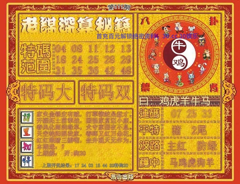 294期:电脑推算/正版解一肖输精光/玄机解一肖/六合皇五字 |
